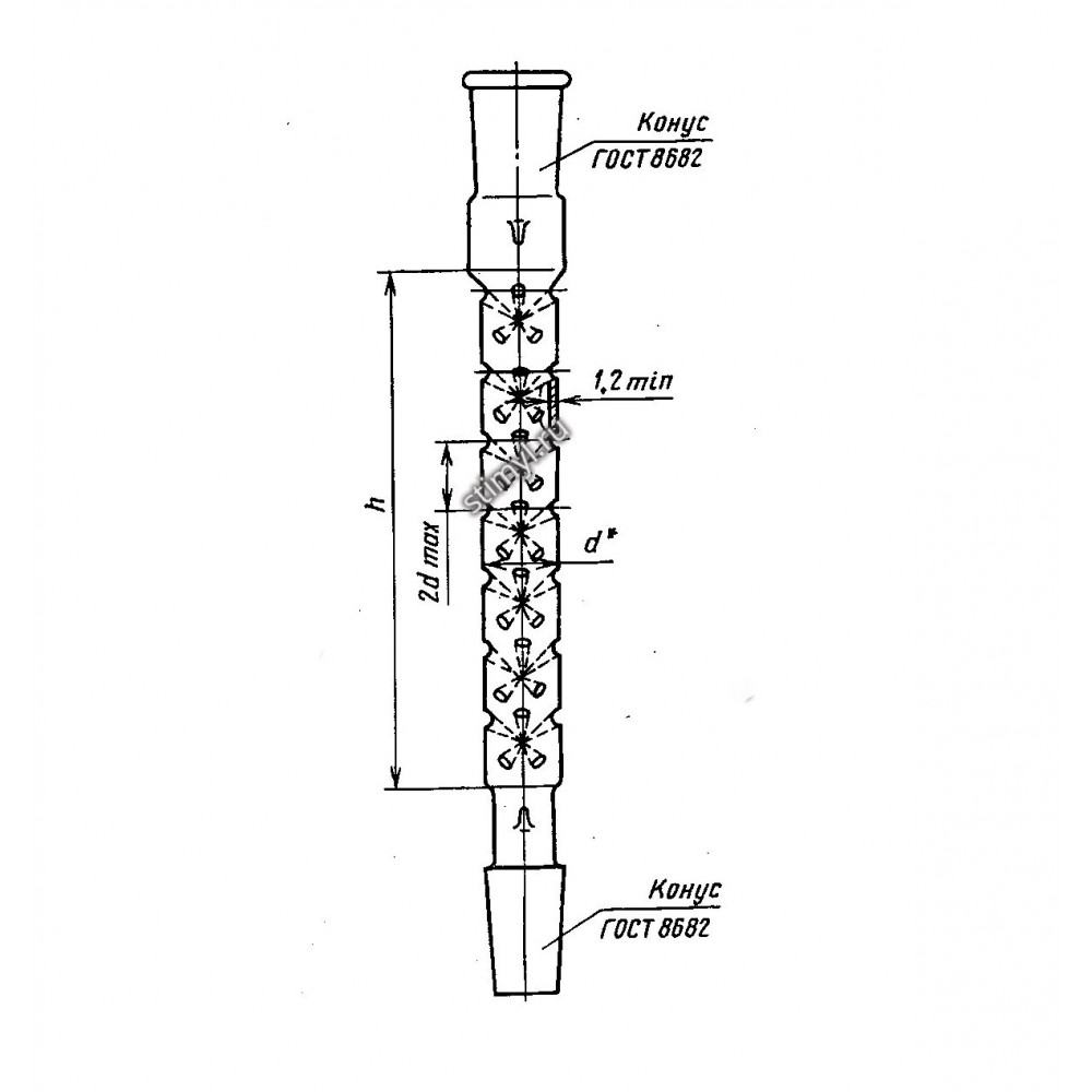 Дефлегматоры - насадки, представляющие собой трубки с расширением и отводом в верхней части.Применяются для разделения жидкостей при фракционной перегонке. Изготавливаются из стекла Симакс ЧСН ИСО 3585.