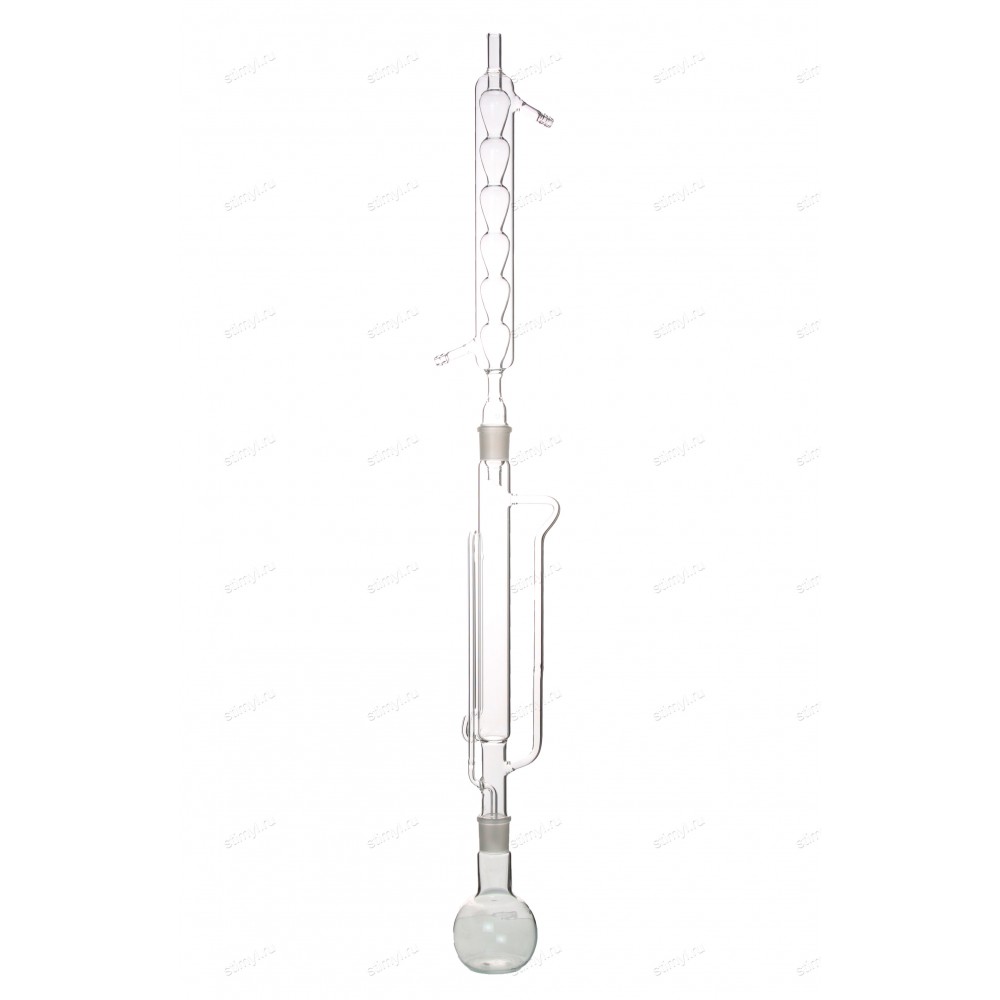 Прибор для непрерывной экстракции труднорастворимых твёрдых веществ из твёрдых материалов. Экстрактор Сокслета устанавливается на круглодонную колбу, в которой находится экстрагирующий растворитель, и снабжается обратным холодильником.