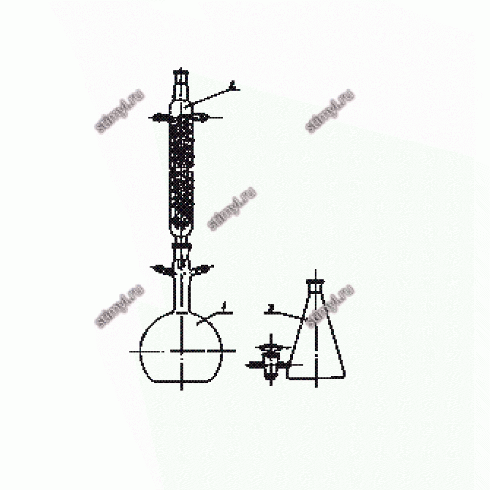 Изделия соединяются между собой с помощью шлифов конических взаимозаменяемых КШ 29/32 ГОСТ 8682-93. Габаритные размеры, мм – 236х240х708 Шифр - 1265