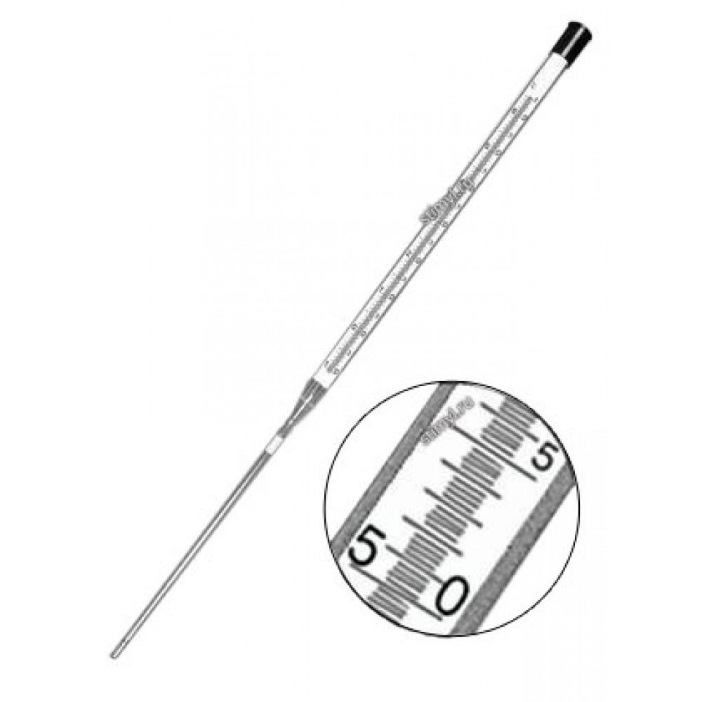МаркаИсп.Диапазон измерения температуры, ºCЦена деления шкалы, ºCТермом. жидкость