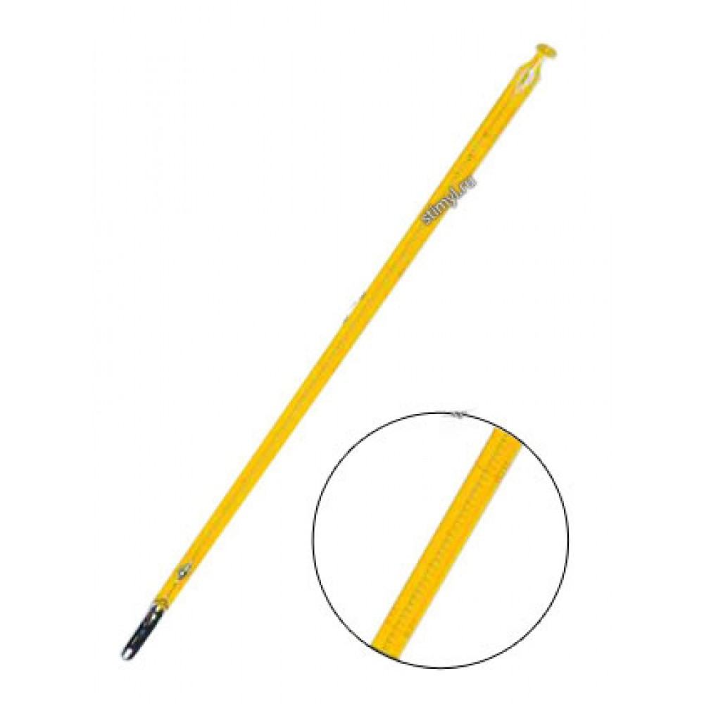 Термометр ТИН-2 для определения температуры нефтепродуктов изготавливается по ГОСТ 400-80. Термометр ТИН-2 — термометр стеклянный ртутный «палочного»типа изготовленный из массивной капиллярной трубки. Шкала нанесена непосредственно на трубку. Термометр неполного погружения.Глубина погружения 90 мм отмечена меткой на капиллярной трубке. Для предотвращения разрушения при перегреве термометр имеет запасной резервуар от 20°С до 35°С.Термометр предназначен для измерений температуры при определении условной вязкости нефтепродуктов.Термометр внесен в Государственный реестр средств измерений и имеет «Сертификат об утверждении типа средств измерений».КонструкцияТермометр палочного типа. Изготавливается из массивной капиллярной трубки.